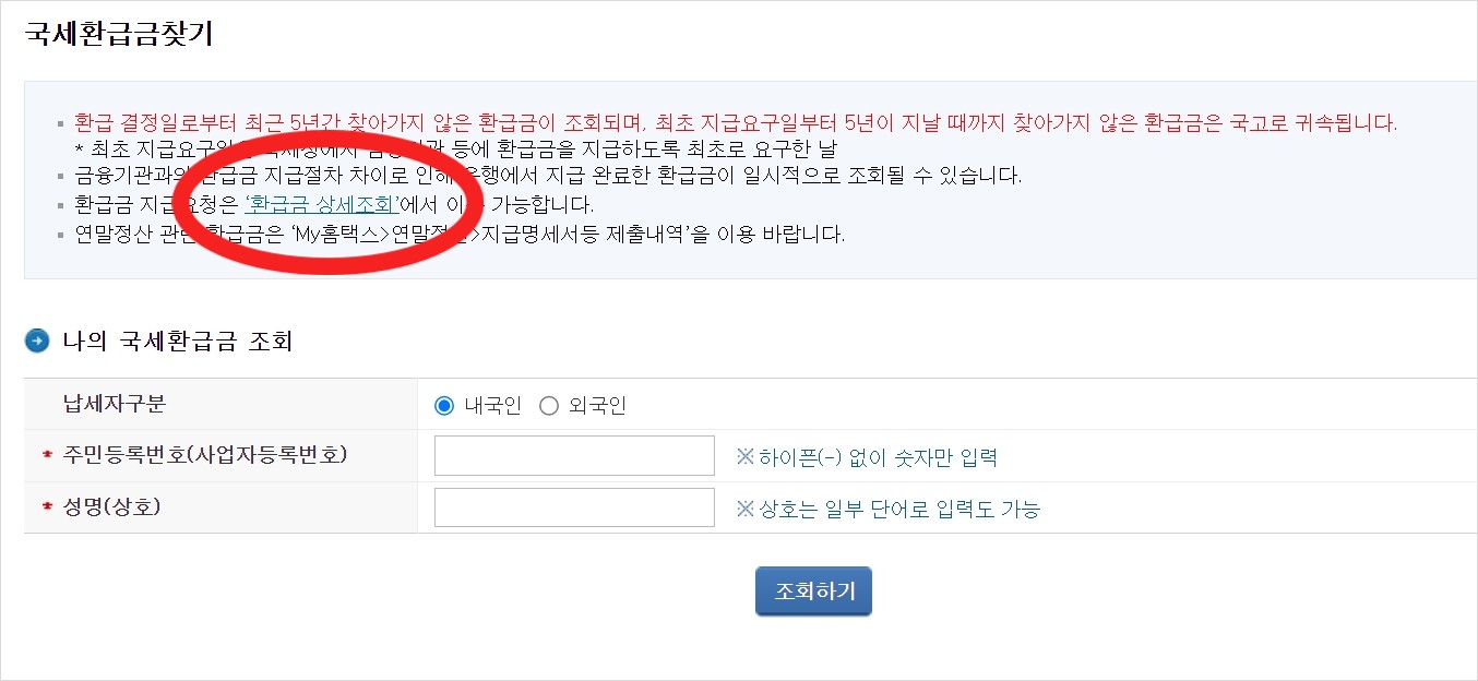 환급금은 환급금 상세조회를 통해서만 국세환 신청이 가능해요~